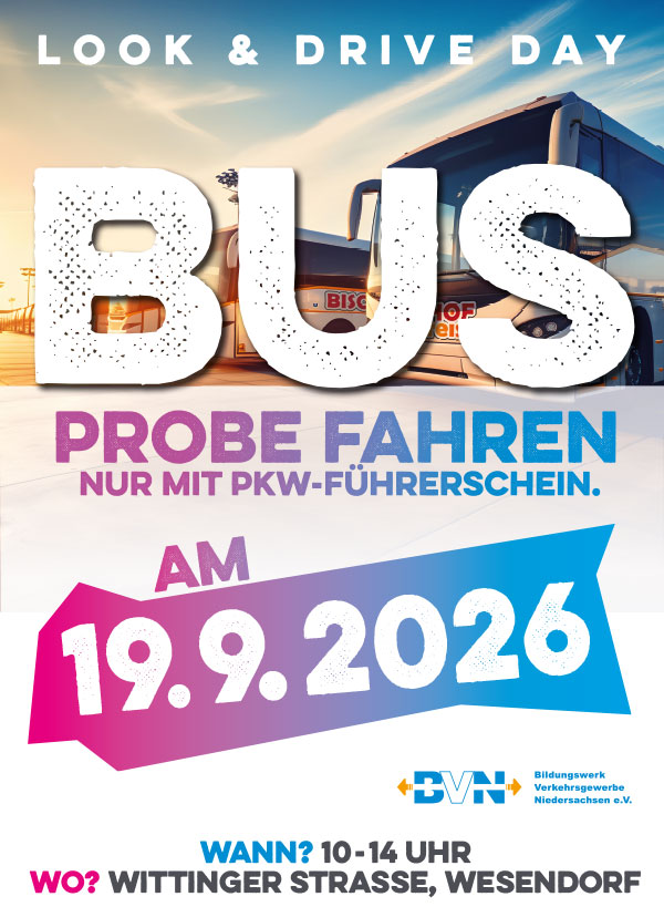 Look & Drive ist für alle, die Busfahren einmal ganz entspannt kennenlernen möchten – egal ob du einfach neugierig bist oder schon mit dem Gedanken spielst, beruflich einzusteigen. Das Ganze findet in einem sicheren Rahmen statt und wird von Profis begleitet.